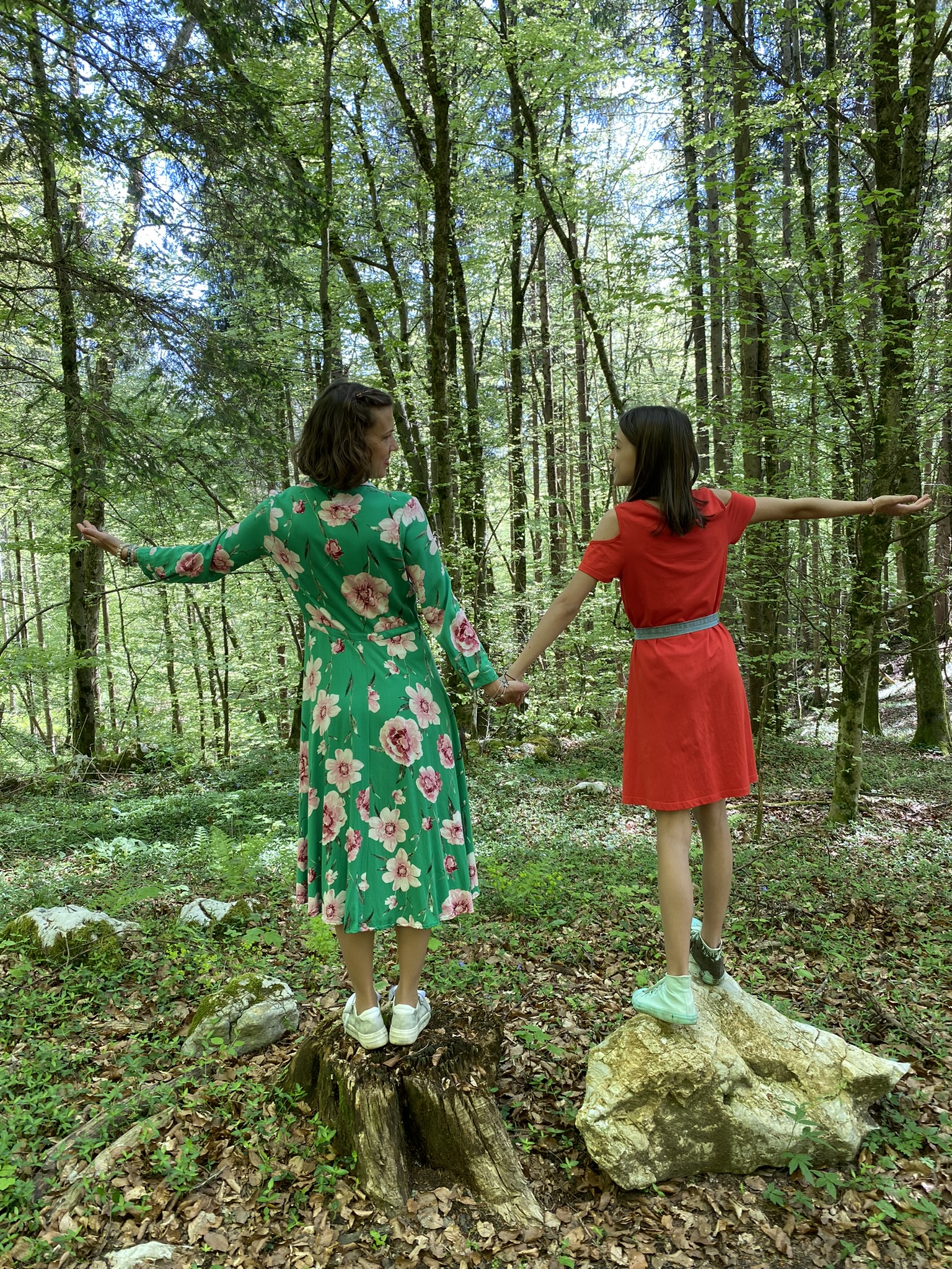 Leta 2012 sem postala mama svoji čudoviti hčerki Gaji in leta 2016 navihanemu sinu Nejcu. Biti ljubeča in prisotna mama mi je bilo v prvih letih njunega življenja zelo težko. Prvič sem se soočala z občutki, da mi nekaj ne gre in sem se utapljala v nemoči, krivdi in sramu. Gaja je kot dojenčica cele dneve in noči prve mesece prejokala, jaz pa sem ob tem čutila čisto nesposobnost biti dobra mama. Nisem se dobro počutila ob dojenju in nisem se dobro počutila, ko je nisem znala in zmogla pomiriti. Takrat sem se začela trošiti do zadnjega atoma svoje moči, sploh po koncu porodniške, ko je bilo treba nazaj v službo, v kateri niti slučajno nisem uživala. Seveda so vmes bili trenutki, ko sem se imela z Gajo lepo, celo zelo lepo, ampak vsakič, ko nisem znala prisluhniti sebi, je v posledici moje izčrpanosti kasirala Gaja. In moj zakon s Sašem. Tudi po prihodu sina Nejca ni bilo kaj bolje. Krmarjenje med službo, ko sem večkrat tedensko morala obiskovati sodišča po celi Sloveniji in otrokoma, ki sta bila po cele tedne bolna po začetku obiskovanja varstva in vrtca, je bilo pretežko breme, in posledično je začelo odpovedovati telo. Leta 2017 sem dobila diagnozo raka na ledvički. Nejc je bil takrat star eno leto, Gaja skoraj pet. V ordinaciji, kjer sem prejela diagnozo, je bil z mano moj mož. Spomnim se, kako niti slučajno nisem pomislila na svoja otroka, ampak na to, da moram pustiti svojo službo. Spet nekaj, čemur nisem sledila. Prvo bolezen sem namreč premagala povsem v mojem slogu. Vrhunsko. Akcija, akcija, akcija. Operacija in takoj za tem nazaj v službo. Nisem se ukvarjala s svojo notranjostjo, le s tem, da moram premagati raka. In sem ga. Navajena uspeha kot v šoli in službi. Brez ustavljanja. Le malo sem se takrat zazrla vase, da sem šla po končani bolniški na delovnik s skrajšanim delovnim časom in izkoristila bonus zaradi majhnih otrok. To je bil prvi zametek sledenja Sebi in svoji notranji resnici. A ostala sem v pravu in zavarovalništvu, kar me ni niti slučajno navdihovalo. Pričenjali sta me začeti boleti obe roki in rami in leta 2019 sem bila operirana na rami zaradi strganega labruma. Leto zatem je sledila druga diagnoza raka, rak na ščitnici. Ko sem izvedela za drugega raka, sem bila povsem izčrpana. Do konca skurjena in onemogla. S težko sapo, nepojasnjenim kašljem in vseprisotno vrtoglavico in omotico. Nejc je bil takrat star dobra štiri leta, Gaja pa dobrih osem. Odločila sem se, da je čas, da vso sranje, ki sem si ga skreirala, odide iz mojega življenja. V živo se spomnim energijskega odtisa stavka, ki sem si ga izrekla v naši garaži, ko sem se vračala od terapije: »Challenge accepted.« Izziv sprejet!